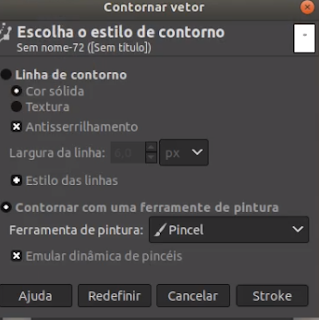 3- Você também pode contornar vetores usando a função de "Contornar emulando a dinâmica do pincel". É preciso configurar bem a largura do traço da ferramenta para que o contorno se adapte bem ao seu desenho. Acesse a ferramenta que vai utilizar, escolha o valor do traço que vai aplicar com ela e volte à "Ferramenta de vetores" e crie um vetor na imagem; escolha o recurso de traçar vetores e a ferramenta, por ex. o pincel; marque a opção de "simulação de dinâmica de pincel". Se nas dinâmicas de Pincel" você marcou a caixa de variação de tamanho/largura do traço, este terá a aparência de Gosso-fino-grosso, como aparece no video.